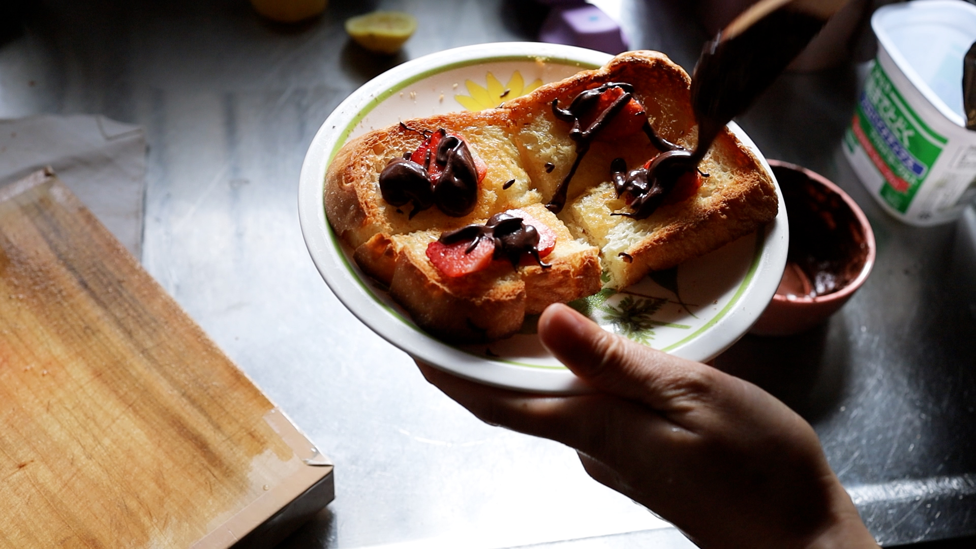 今回は、いちごと合わせてトーストにのせました。